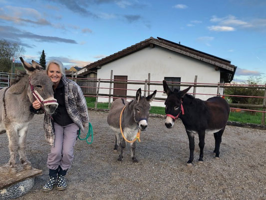 Auf unserem Hof leben zurzeit 5 Pferde und 8 Esel. Wir bieten nebst Boxen auch einen Offenstall mit grosszügigen Weideflächen. Ein Profireitplatz sowie ein Sandplatz zum Longieren steht zur Verfügung.